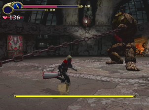 But since gameplay is focused on combat, at least that's exceedingly well done. The game plays and feels a little like a quicker-pased version of Rygar for the PS2, which is a very good thing. Leon has the usual double jump, along with a block attack and a nifty backflip. He also has two primary attacks that can be strung into a few combos, though these will supposedly grow in number as the game goes on. What's really cool are the special attacks - the weaponry system is exactly the same as Harmony of Dissonance, where you combine your current subweapon with a colored orb for a unique attack.