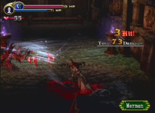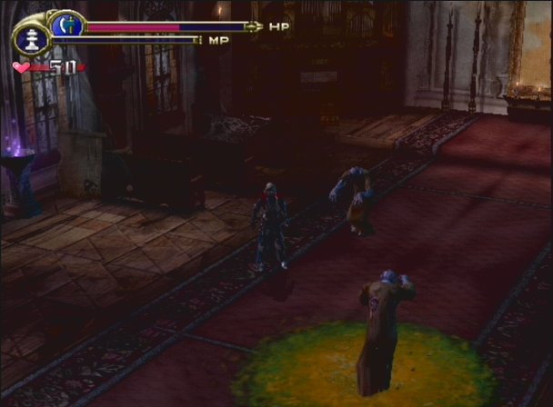 and also get your Vampire Killer whip. And if the screenshots look dark and uninteresting - well, that's because this whole area is dark and uninteresting. For being the last level, you'd barely know it by its design, although there are a lot of rather difficult enemies. After refighting the Doppelganger on the first floor, you're allowed onto the second flight, where you must retrieve the VI stone, flip it into the IV stone with the proper mechanism, and retrive the crest that opens the door to the final battle.