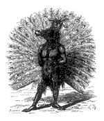 A demon with a lion's head surrounded by five legs that shaped a wheel. Also appears as a centaur or sea star.