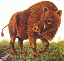 Funny little creatures called Catoblepas in Circle of the Moon, and Gorgons in Symphony. It has the body of a buffalo and a head of hog. Its stare or breath can either turn people into stone, or kill them. Gorgon was also the name of the family where Medusa came from.
