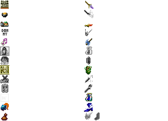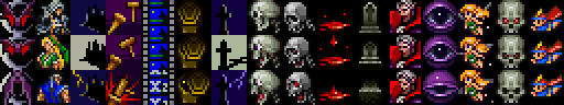 ![]() These are some of the unused items found in Symphony of the Night, ripped once again by Anapan. Note that some of these did appear in the Saturn version.
