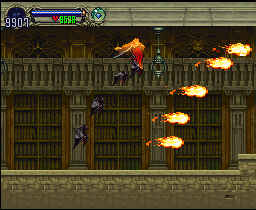 | The bat will fly by your side and attack enemies - not too useful by itself, but when Alucard changes into bat form, they'll summon a flock of them. Much like the options in Gradius, they'll follow your movement and attacks when you attack. The higher the level, the more that are summoned. |