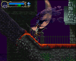 The outer bridges of the Clock Tower will crumble if Alucard sets foot on them, so watch out. The inner workings of the tower are full of gears and Medusa heads make the jumps tricky. Further into the lair watch out for knights whose spirits will attack once their mortal body dies and jump across swinging pendulums. The raven king Kuramusan guards the door to the Castle Keep.