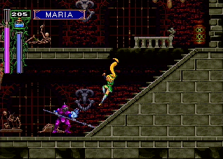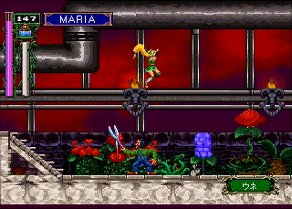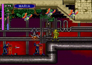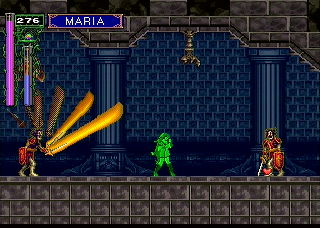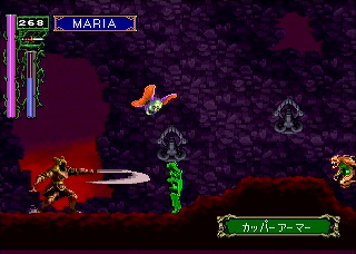 In the greenhouse, you'll just faced an assortment of Flying Swords, Venus Weeds and knights. At the end of the hallway is one of the exclusive weapons to the Saturn version,