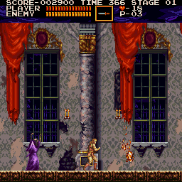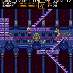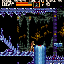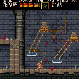 Most of this level is a variation of the second level from the original Castlevania - with the exception of the large statue that cries out tears of blood, which turn into red skeletons.