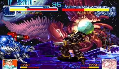 The music varies from electronic tracks to synthy hard rock, which perfectly captures the mood. It was composed by Anachey Takapon, alongside Akari Kaida, Masato Kouda, and Naoaki Iwami. Takapon had previously done the Vampire: The Night Warriors soundtrack, and would later put together the tunes for X-Men: Children of the Atom, Marvel Super Heroes, and Street Fighter Zero 3, among others. The sound effects are great, with cool sci-fi sounds for the attacks, and crunchy blows and explosions.