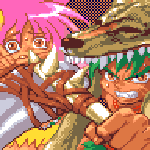 Visually, Cyberbots continues Capcom’s streak of excellent fighting game graphics, with large, characterful, chunky sprites that make it easy to distinguish what is happening at all times. The backgrounds are awesome too, with many being animated; buildings crumble as you clash, crashed ships burn, and outer space flickers behind you. Even the more static backdrops are full of detail and some wonderful pixel art.