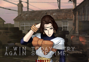 The, also, unfair final boss who bears a friggin’ sword. Not much is known about him except that he’s apparently a ruthless and powerful crime lord whom everyone wants dead. He has very few moves, but he doesn’t need too many when his katana grants him unfair power. His sole super attack can chop off about half of your life bar. While also rather SNK-level cheap, he is definitely beatable.