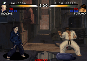 While Daraku Tenshi is a competent fighter as it stands, there is a problem with it that may offset all the super-expert fighter addicts who take tier lists as gospel, namely, the character balance is borked. Roche basically kills everyone with his highly damaging attacks and incredible speed, with Haiji as the second-most broken character due to his charged-up super punch which can obliterate more than half the opponent’s life bar. Torao is perhaps a bit too good, with his unblockable knife-hand super and rather fast jump-kick. On the polar end, Cool’s attacks do weak damage that are further restrained by his charge motions, detrimental in a game that’s arguably more about offense than defense. Harry and Taro hit hard, but their slowness also becomes detrimental. On the other end, Yuiren’s attacks perhaps do too pithy damage despite their quick speed. Yuiran’s placement in the cast is a bit hard to define with her throws, but like Cool, the demanding charge motions feel like a bit of a detriment in this relatively quick game. It’s still a fun game if you don’t take it too seriously, but it wouldn’t even have been considered for any tournaments when it was first released, much less in the modern day.