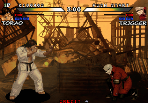 When Psikyo decided they wanted to make another fighting game, they wisely decided to not connect it in any way or form to Battle K-Road. However, they didn’t want to make it like any other fighter in either gameplay or atmosphere, and when they would do so four years later, the result would culminate in a criminally overlooked fighter that stands head and shoulders above their first effort. Daraku Tenshi (which literally translated into The Fallen Angels for its American release) is not the most diverse or well-made fighter to ever exist, but it offers a fantastic dark and gritty atmosphere, with decidedly unique characters, bearing relatively realistic and straightforward move lists with nary a “hadoken” in sight. It also has a vague plot, unlike BKR which was just a straightforward fighting tournament with a bear as the champ. It involves a massive earthquake tearing a nameless city to shreds, which may have either been a former Japanese city or Los Angeles (the latter would make sense considering the prominence of “Angels” in the title).