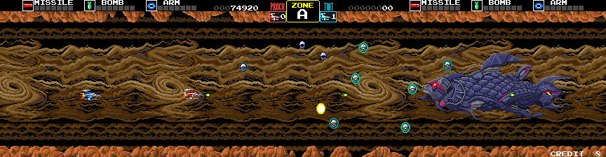 Many Darius games saw revisions. For this one there’s an “Extra Version”, which tweaks the enemy layouts and weapon strengths, making it a bit easier.