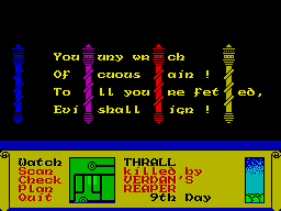 During this time, Beyond was bought up by Telecomsoft. Most of Singleton’s future games would be published under Telecomsoft’s Firesoft label. At some point in 1986, Singleton formed Maelstrom Games, a small development team with virtual unknowns Alan Jardine and David Gautrey. This team worked on numerous Singleton-led titles up until the mid-’90s, including the maligned Lords of Midnight: The Citadel and Ring Cycle. Future missteps aside, Maelstrom’s first game was the ambitious and critically-acclaimed Dark Sceptre.