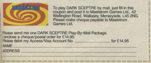 The play-by-mail form. The reader cut these out of adverts in various magazines and mailed them into Maelstrom.