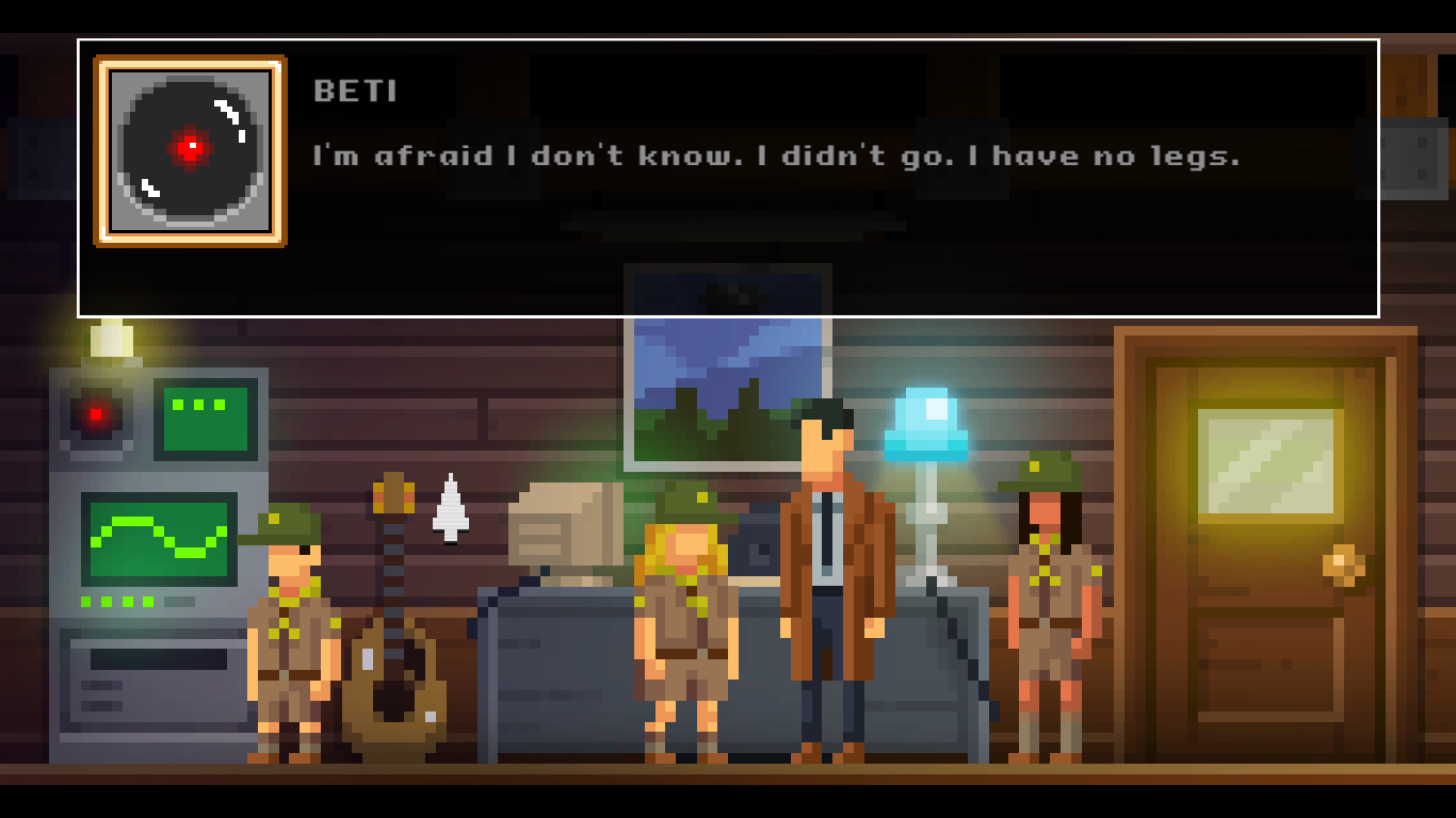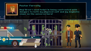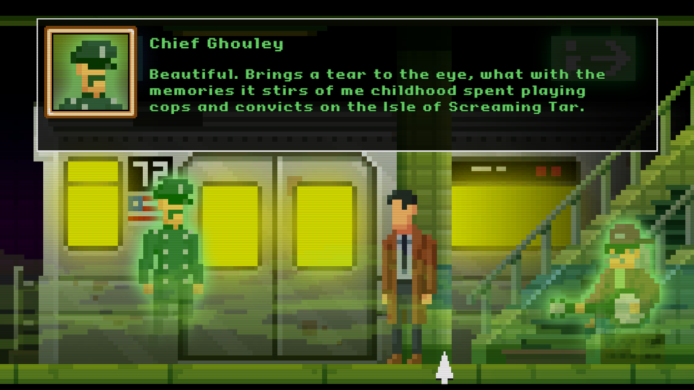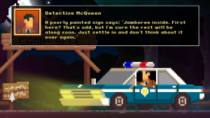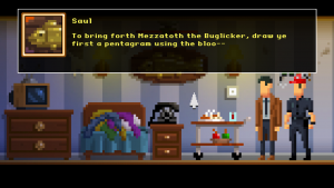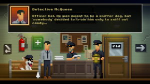 The early episodes are mainly short gag collections, which are impressively funny just for how compact these chapters are. Comedy games tend to have a pacing issue, where you have to actively look for the jokes and may not get punchlines worth the time investment. The Darkside Detective mainly works in basic puns and nonsensical absurdity, and those styles of humor work well with fast pacing. It’s quite charming, even with the extremely generic sprite art design, what with every character looking like a generic stick figure indie hero man, thanks mainly to Gabe McCabe’s peppy dialog.