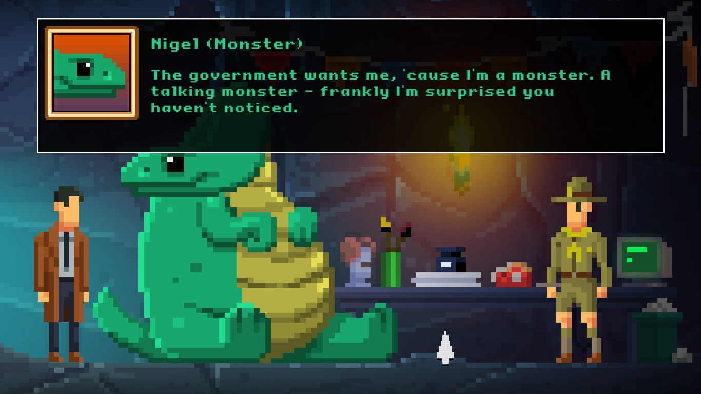The Darkside Detective is probably one of the most middle of the road sort of adventure games you’ll ever play – at first. The idea is you play as one Detective McQueen, a paranormal investigator who deals with the spooky stuff in the town of Twin Lakes, helped by his dimwitted sidekick Officer Dooley. Shenanigans ensue, and you learn more about the characters as you go from case to case, like McQueen constantly being undervalued by the higher ups. It’s not much at first, but the longer the game goes on, the more it adds to its world, the character dynamics, and the supernatural ideas explored.