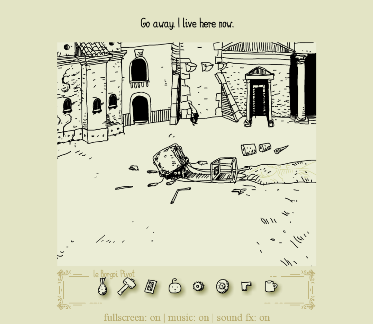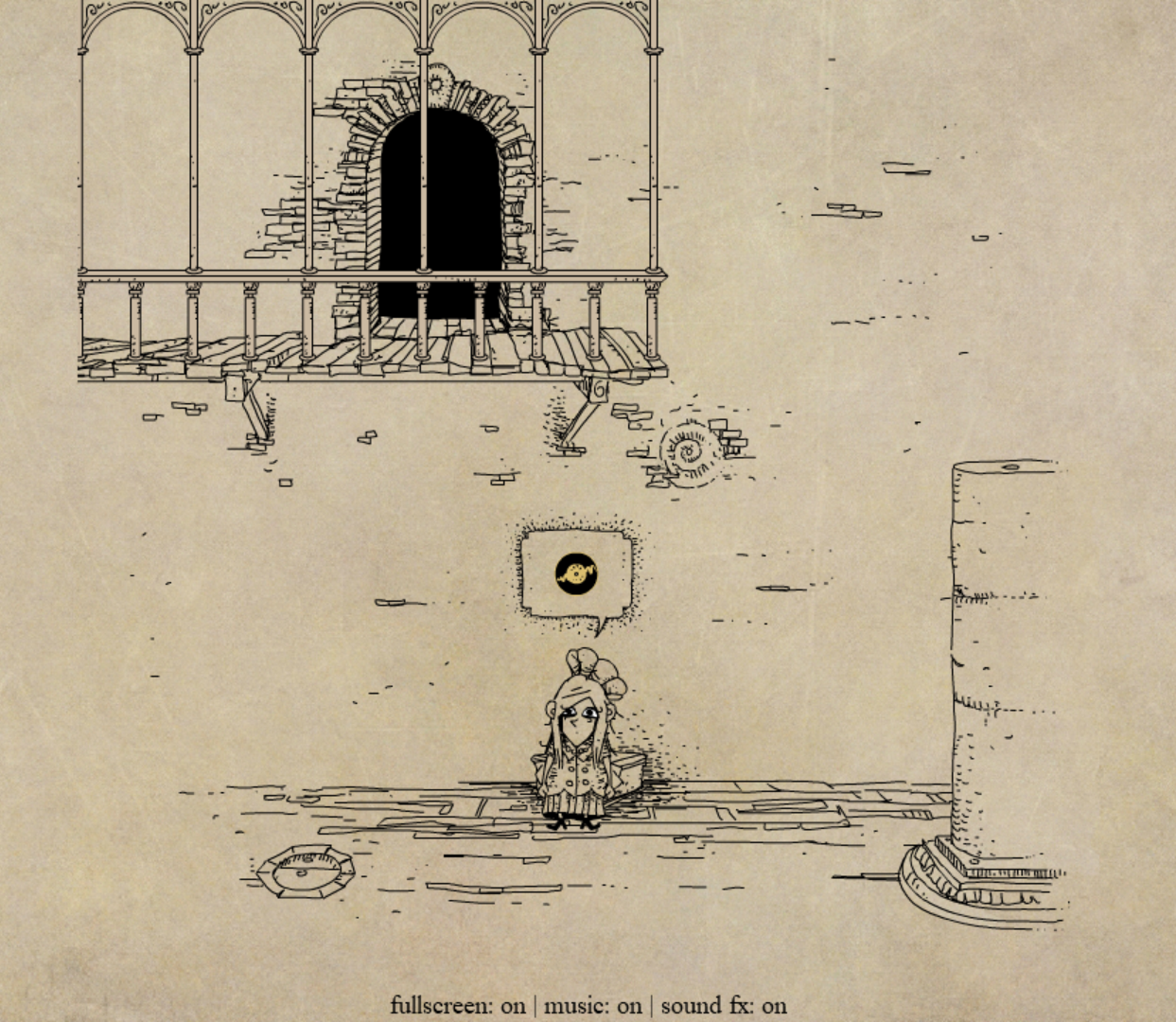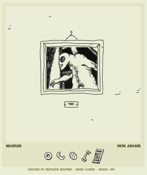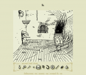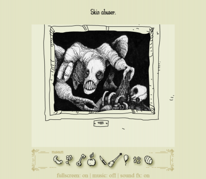 Polish graphic artist Mateusz Skutnik has designed a number of games over the years, from the sterile room-escape series Submachine to the more lighthearted puzzle-platformer Slice of Sea. Bridging the gap between these works is Daymare Town: four meaty, atmospheric point-and-click Flash games initially released between 2007 and 2013. Daymare Town‘s distinct black-and-cream-color art style can be described as “Edward Gorey meets Shel Silverstein”, with both the gloom and whimsy to match, and these illustrations make for clear, sensible puzzles that rarely need an explanation.