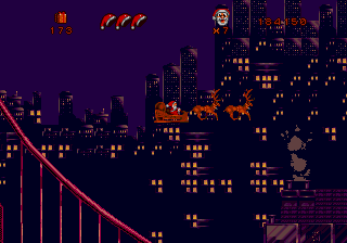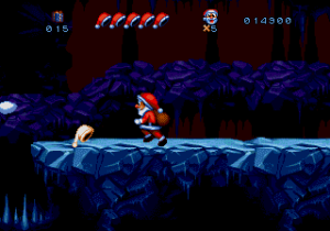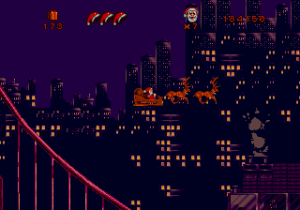 Daze Before Christmas utilizes some of the development assets and libraries used to create the Mega Drive platformer A Dinosaur’s Tale, which Funcom developed as a tie-in to the 1993 animated film We’re Back! A Dinosaur’s Story. But aside from sharing some HUD elements and a general sense of physics, they’re very different platformers with little in common.