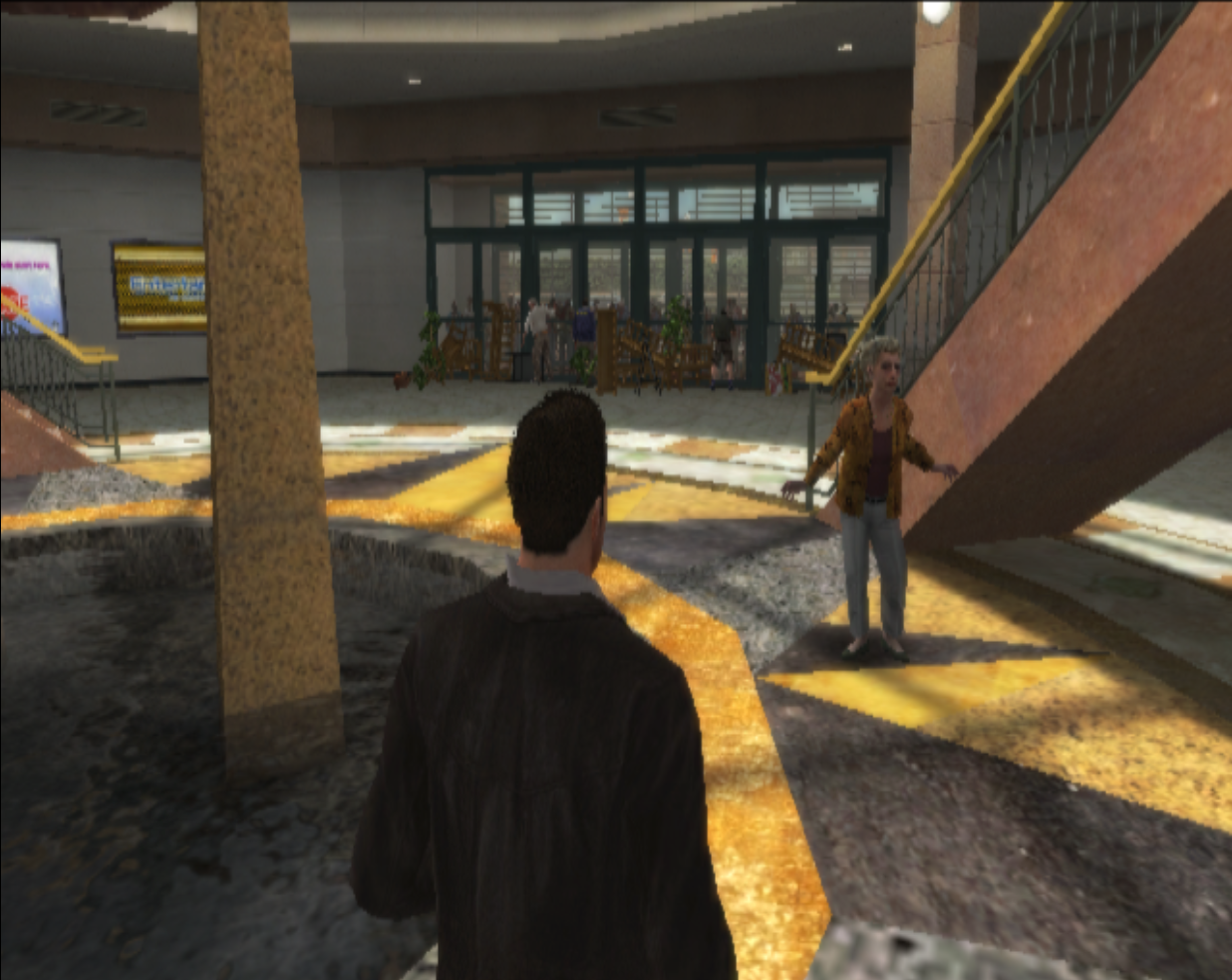 The music is a mix of perfectly in tune mall music (a winning effect from Romero’s films) with the occasional hard-rock / rock-rap tracks of the time showing up during boss fights or tense situations, and feels only a bit dated or unsuccessful in parts, as, on the whole, the heavy guitar riffs and amped up score gel well with the more explosive moments of life or death action throughout the game. One complaint about the sound, or its design more specifically, was the ringer from the player’s transceiver (which would ring, have to be answered, could be interrupted, and then would ring again), but the soundtrack has its standouts that have stayed stuck in players heads simply because of where and when the song was heard (“Gone Guru” being a track of particular note, as well, because it was repeated ad nauseam in the central area of the map until you defeated the psychopaths harassing you there).