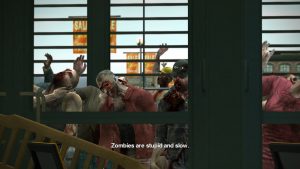 Thankfully though, for most of the game, the only enemy in the mall is the prototypical, “dumb”, “slow moving” zombie, but a lot of work has been done in making the zombies collectively act in familiar “horde” mentality (by either ignoring Frank, or slowly grouping, circling, and lunging when the player least expects it), so it’s easy to feel safe and empowered early on and when with an impractical and impromptu collection of weapons, yet very unsafe as soon you’re low on health, lost or far from safety, and down to your last, almost broken weapon.