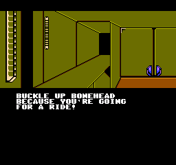 Sunsoft games have a habit of referencing each other, and Dead Zone is no exception. As well as the Ikki arcade sequence, the Lionex space colony seems to be named after the unreleased game for the Nintendo VS. System. You can also find a phone that calls the Sunsoft hotline and a copy of the somewhat notorious Atlantis no Nazo (which shares some development staff with this game). Kirk proclaims his love for the game and you can even pick it up, but you’re not allowed to throw it away or you’ll be cursed!