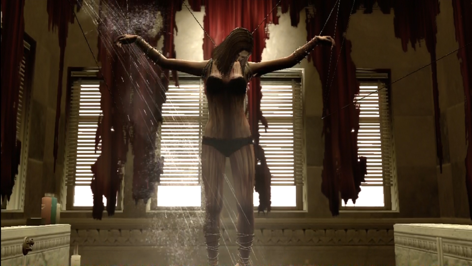 The trailer showed glimpses of the odd happenings in the town. The body of a young woman named Anna is shown laid out in a morgue while another woman is shown tangled up in a grisly death-trap. Two creepy, elderly twin dwarves chant while making jerky, jarring marionette-like movements in a red room. Glimpses are shown of a dark, axe-wielding figure with glowing red eyes in a long, red coat.