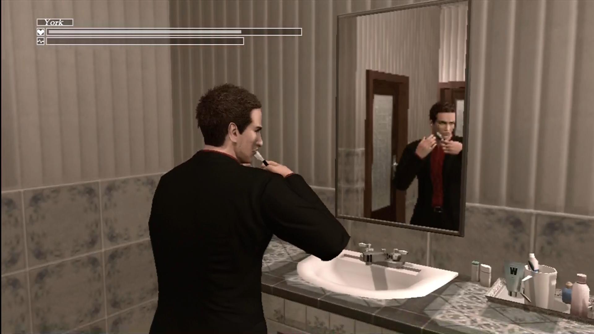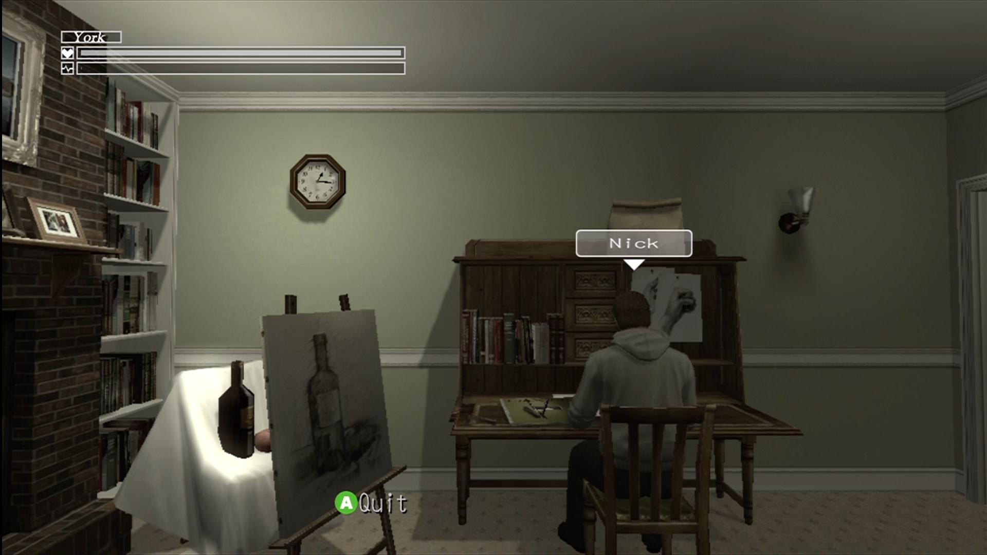Every so often York raises his hand to his head to speak to Zach. However, it isn’t clear to the player just who Zach is. Is he a figment of York’s imagination? Is he the player? York has no real qualms about talking to Zach around others, despite the confusion and awkwardness that can ensue.
