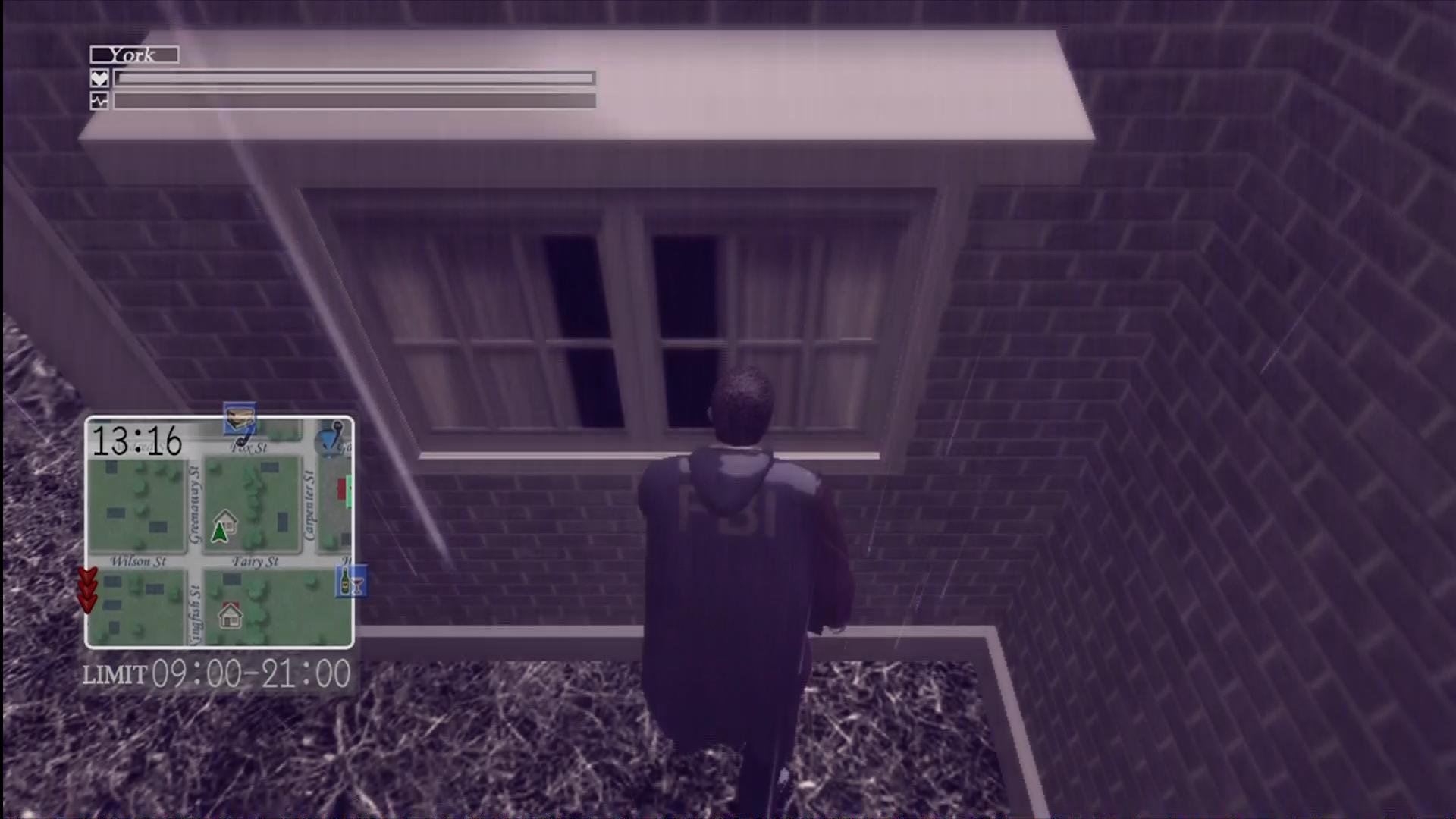 When all is as right as things can get in Greenvale, York is free to either continue with his investigation or explore. The city is not as densely populated as those in Shenmue or The Elder Scrolls games, but like these games NPCs have their own routines and there are an abundance of sidequests to take on. As one might expect, completing many of these sidequests will reap rewards that will make the game much easier and less infuriating in some cases. For example, the “Passion Red” suit increases York’s maximum health, the radio allows the player to teleport to previously visited locations rather than driving across the map and the “Weather Doll” can regenerate York’s health and pulse rate. Sidequests can range from Sokoban, darts and fishing minigames to time trial races and hunting down missing bones. 65 trading cards are also hidden throughout the game, each of which divulge details of the characters or items they depict.