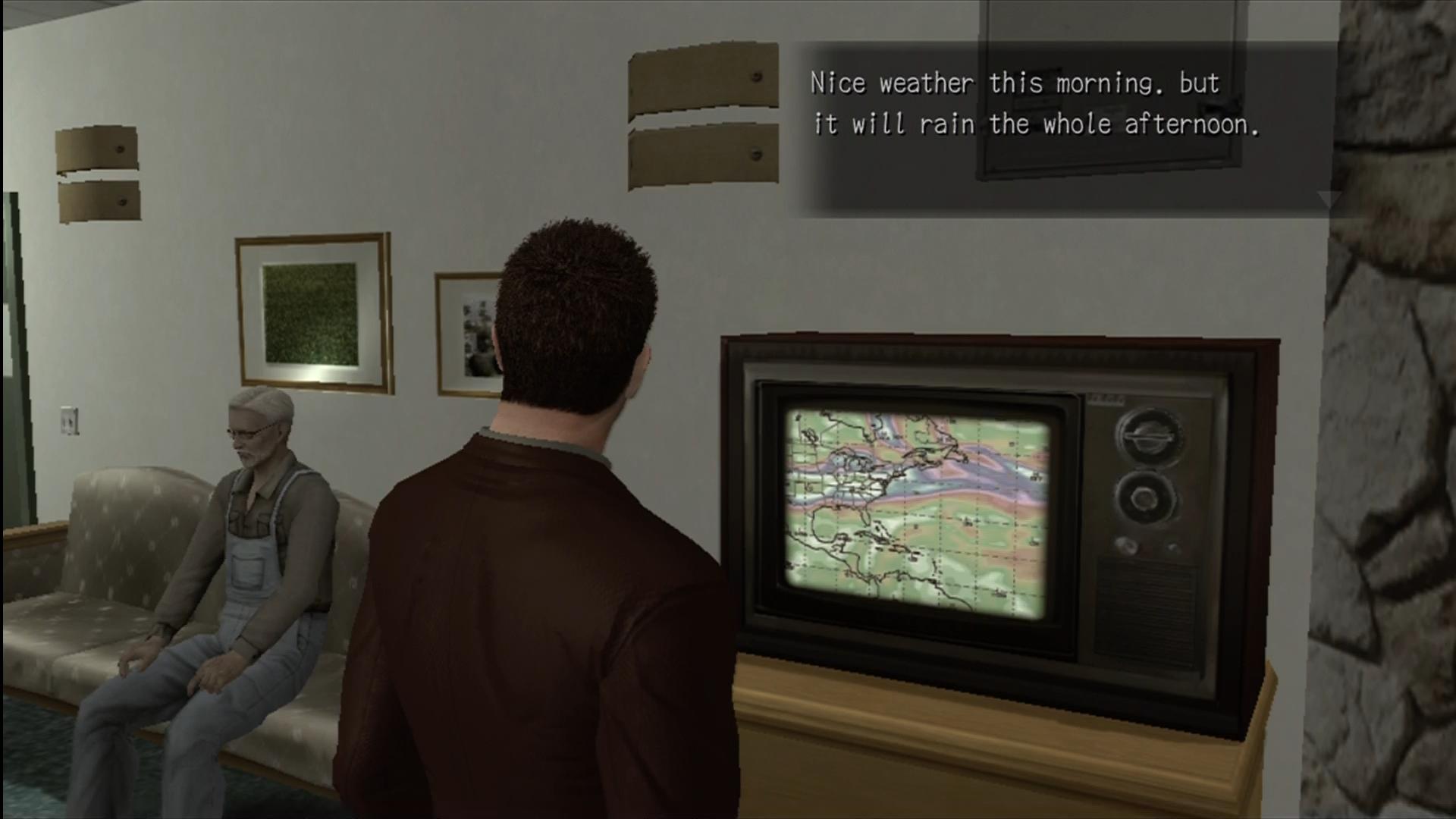 While not as macabre as Silent Hill‘s own “Otherworld,” Deadly Premonition‘s is certainly similar to Silent Hill‘s default “Foggy World.” The shift between worlds takes place when it rains, outside after midnight or as York gets closer to uncovering the mystery of the red seeds. Most of the “Profiling” sections of the game take place in the Other World. Profiling in Deadly Premonition requires York to track down several clues in a particular area to deduce just what has happened. Profiles are displayed as obscured, grainy footage until clues, displayed as Polaroids, are found. Each clue unveils part of the story behind each area until the whole video is viewable at the end of Profiling.
