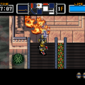 Picking these up refills the “TGR” (Tonosama Great) gauge that is used to turn the scrawny morons into their beefy fathers: if the gauge is 50% or more, pressing the fourth button makes the screen flash and begins a transformation that would make the Incredible Hulk proud. The two meathead daddies control in the same way as their sons, but they ditch the weapons and instead rely only on their literally blazing punches.