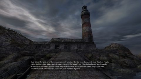 When approached as a game, Dear Esther is bundled frustration. A game all wandering around an abandoned island sounds like a great premise for exploration and wonder, but that’s not what Dear Esther is about. The first-person experience begins in front of a light house, with the adjacent hut’s door wide open. I walked up to the building burning with anticipation of ascending the tower and enjoying the view, but was soon disappointed by a broken staircase and no means around that obstacle.