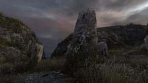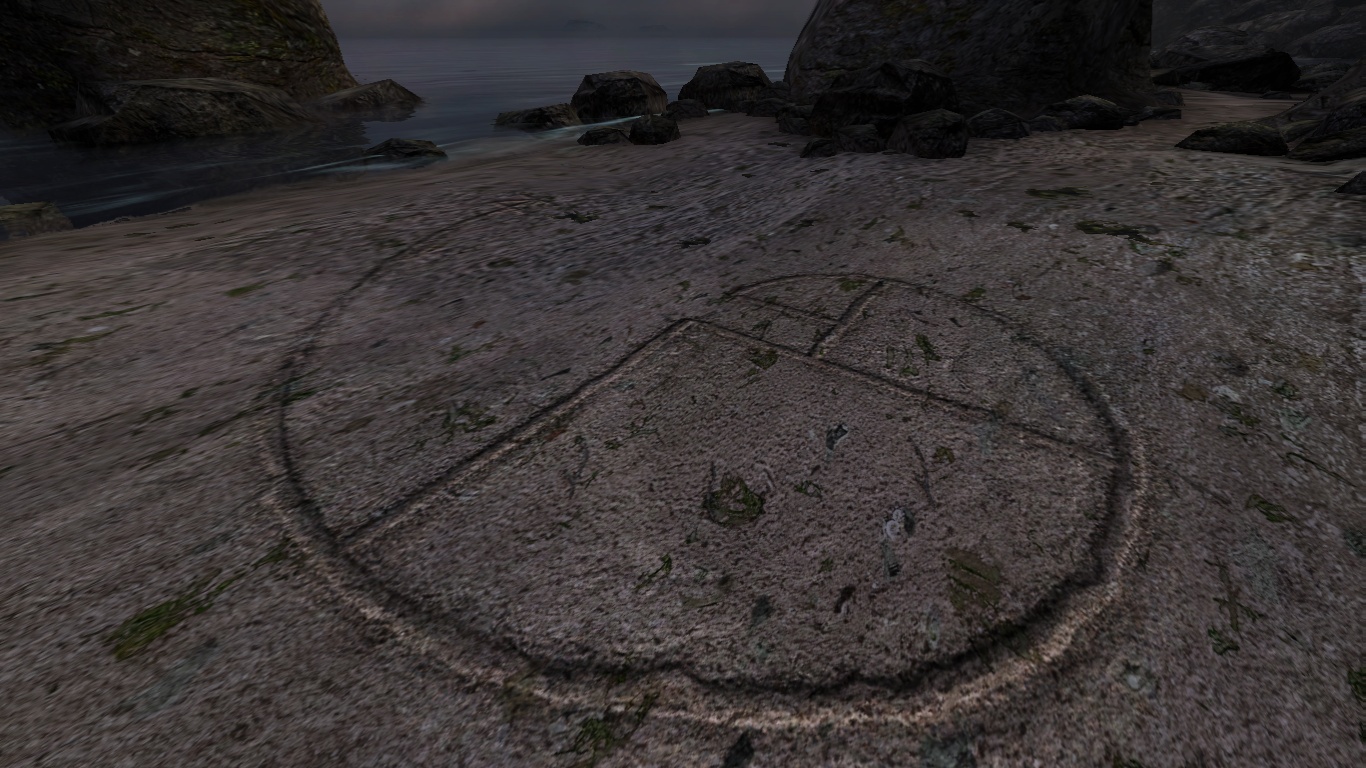 But Dear Esther is rarely even that subtle: Before long, one approaches a shipwreck at the beach, the game teasing with the words: “There must be a hole at the bottom of the boat,” but approaching it from the water is made impossible by a wall of ankle-high rocks. Dear Esther is not like a stroll over an island, it is like a guided museum tour of some historic site, no touching allowed (there are no means of interaction, no jumping and no climbing) and the most intriguing areas off limits to the public. You can go into the water, but if you try to get anywhere by swimming, the game pretends to drown you and just puts you back at the shore.