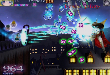 In case that wasn’t enough, baddies dispatched via lock-shot spawn heat-seeking, bullet-spewing skulls, which can only be destroyed with the character’s main shot – basically, if you’re doing things “right” the screen will get ludicrously crowded in mere seconds, but can be mopped up just as quickly, to the point where you can stay in so-called “fever” mode almost constantly and milk bosses for extra points with minimal effort. Oh, and destroying bullets and skulls also increases a separate “magic charge” meter, which awards an extra bomb when filled – good luck keeping track of all that without a bit of practice. All in all, while “Arrange” mode makes for quite the spectacle, some may find it too gimmicky and slow-paced to compete with the disc’s other offerings.