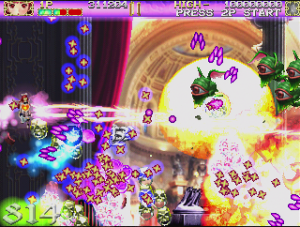 Enter Shinjuku-based developer Cave (an acronym for “Computer Art and Visual Entertainment”), foremost among a small remaining handful of shooter-centric game companies and arguably the defining icon of “bullet hell” to enthusiasts. While its “core” player base has kept business humming for 15 years and counting, even this rather remote corner of the gaming world can only resist the influence of a shifting consumer pool for so long. The ever-more-urgent question for a company like Cave has been, in a nutshell, “How does one create an arcade-style shooter that can appeal to less-experienced players without alienating the veterans that got us here?” The answer, as it turns out, is simpler than you’d think: just pack in enough variables, divergences, and options to allow almost anyone to tailor the experience to their liking.