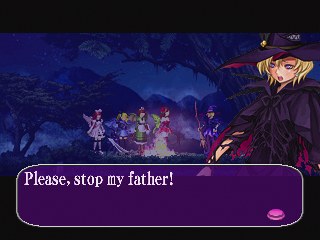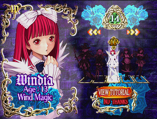 Boss of the “swamp” level, playable only in the game’s “Mega Black Label” variation. Despite her Japanese name she’s actually English, and even knew Windia in the “real” world: another auto accident punched her ticket to Gilverado, but unlike the other girls her parents were also in the car, and were transported with her. Unfortunately, fearful native residents chased the family to the land’s uninhabited outskirts before the Count even knew they’d arrived; her father coldly ran off soon afterwards to seek a way back, leaving Sakura to watch over and defend her ailing mother alone. Two birds, Karko and Kuta, work together as her familiars.