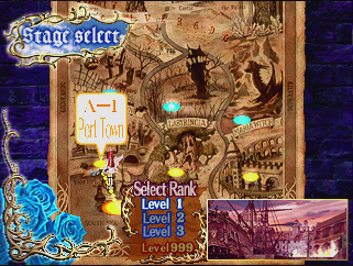 Refreshingly user-friendly as these features are, Deathsmiles‘ biggest draw of all, especially for non-shmuppers, is the ability to individually adjust each stage’s challenge level. The game’s six initial locations are divided into two sets of three, and can be tackled in any order provided you alternate your choices between the “A” and “B” groups: more importantly, there are three distinct difficulty settings to choose between for each. Newbies should have a good chance of completing a “Level 1” area in one piece, thrill-seekers can stick with “Level 3” all the way through, and everybody else can mix and match as they see fit. Players will eventually be shut out of the lower difficulties as they progress, and the final stage (plus an unlockable optional “extra” area) can’t be softened at all, but this variable is still a great boon to casual fans who need to be eased into the game’s mindset, and allows Deathsmiles to serve as one of the few modern shoot-em-ups well-suited for mixed-skill two-player sessions.