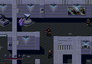 And then there’s the overhead stages, which are just awful. Your objective is to rescue civilians, but these sequences are more like an old game of Gauntlet than anything else, with a constant stream of samey bad guys coming toward you. Also, there tend to be bombs all over the place that are barely visible amidst the backgrounds, and if you get to close too them you lose a massive amount of health. On top of that, they look really bland compared to the rest of the game. Fortunately, these stages tend to be very brief and the civilians are usually easy to find.