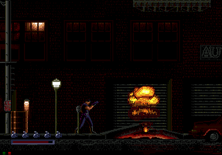 Ultimately, what hurts Demolition Man the most is its unreasonable difficulty. You lose health just for touching badguys, and your health is fairly limited. You can buffer your health meter by picking up kevlar vests, but these are pretty rare. Falling even a little is harmful or fatal depending on the height. The boss fights with Phoenix can be a little ridiculous (it took me about 20 minutes to figure out how to beat the second boss fight on the easiest difficulty setting thanks to there being a lack of any FAQs for the game). And most annoying of all, the enemies respawn CONSTANTLY. They never give you a moment of peace to navigate a complex platforming segment. This is extremely frustrating because trying to shoot while platforming tends to get you killed more often than not, so you’ll pretty much have to ignore the badguys while negotiating precarious terrain and take a few bullets in the process.