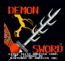 In Demon Sword, the story is much simpler – you control a warrior named Victar, who must travel the world to assemble the titular demon sword. It has completely misleading cover artwork that depicts a generic, Western-looking barbarian holding the sword up high, which still looks like the seven bladed Nanatsusaya no Tachi. This completely ignores the fact that the game takes place in an obviously Asian setting. Sayo is still in the ending, but Demon Sword cuts out the close-up picture of the couple.