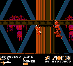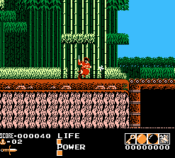 Demon Sword (or Fudou Myououden in Japan, translated to “The Legend of Acala”) isn’t technically a sequel to The Legend of Kage. Rather, it’s a whole new, longer game that takes its high flying mechanics and fleshes them out significantly for the console environment. The hero wields both shurikens and sword attacks, and has similar, super-high jumping techniques that can carry him through the air for several screens. However, there are a lot more stages (7 in the American version, 13 in the Japanese one) which are all much longer than anything found in The Legend of Kage. Each level is huge, but they’re also extremely repetitive, sometimes recycling layouts to the point where it feels like you’re running in circles.