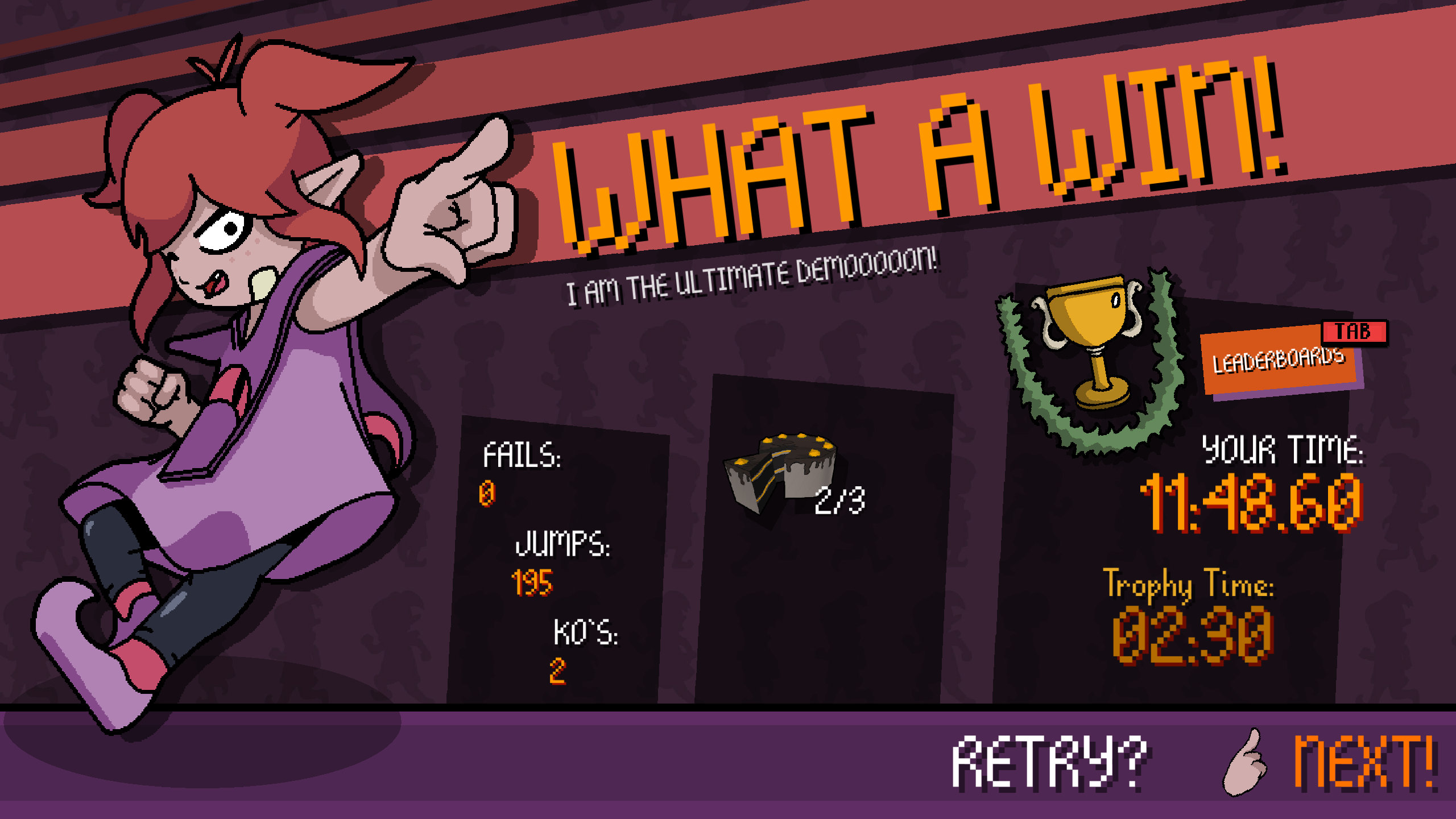 What we have here is a full experience with a lot of polish well worth a look for any platforming fan. The sheer mechanical depth and the added focus on making sure you can make use of those high skill platforming tricks really makes it heads above a lot of its contemporaries. Demon Turf really gets its genre, and does everything it can to satisfy enthusiasts of it.