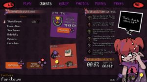 The music by Fat Bard is also the perfect mood setter for such an irreverent and wacky world. It’s probably best described like a mix of pop punk flavored electronic, Disgaea, and childish teasing. A wild mix of record scratches and kiddie choirs chanting nonsense (possibly with a chipmunk distortion effect) results in a score that perfectly nails Beebz personality and the one of the world around her.