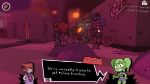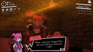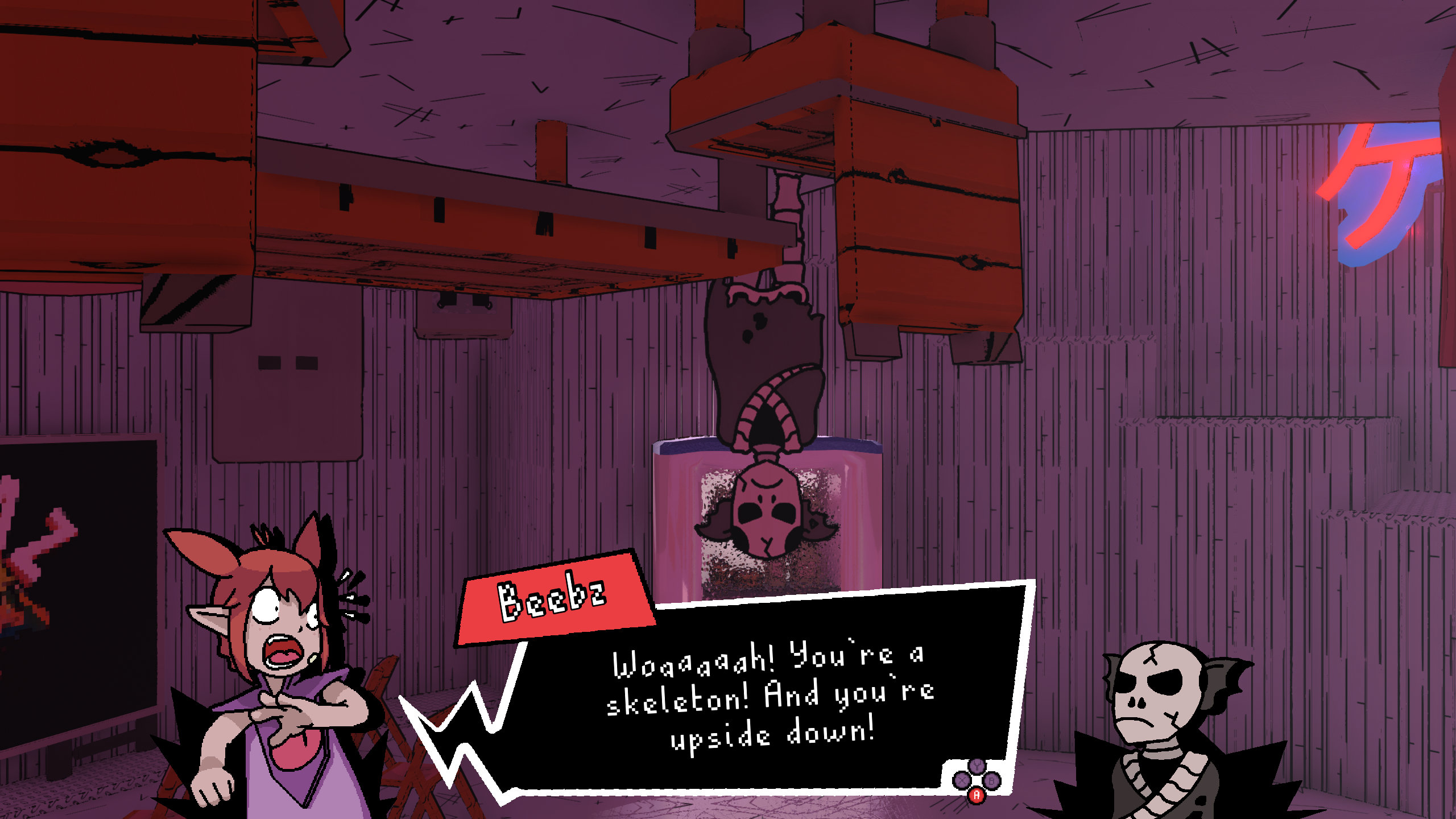 The game follows Beebz, a sassy demon in the demon world who wants to kick the Demon King’s butt and take his throne, for no other reason then petty spite. To do so, she has to collect batteries to open gates to various turfs run by various demon gangs, letting her go take on the big guy once and for all once all four turfs are taken.