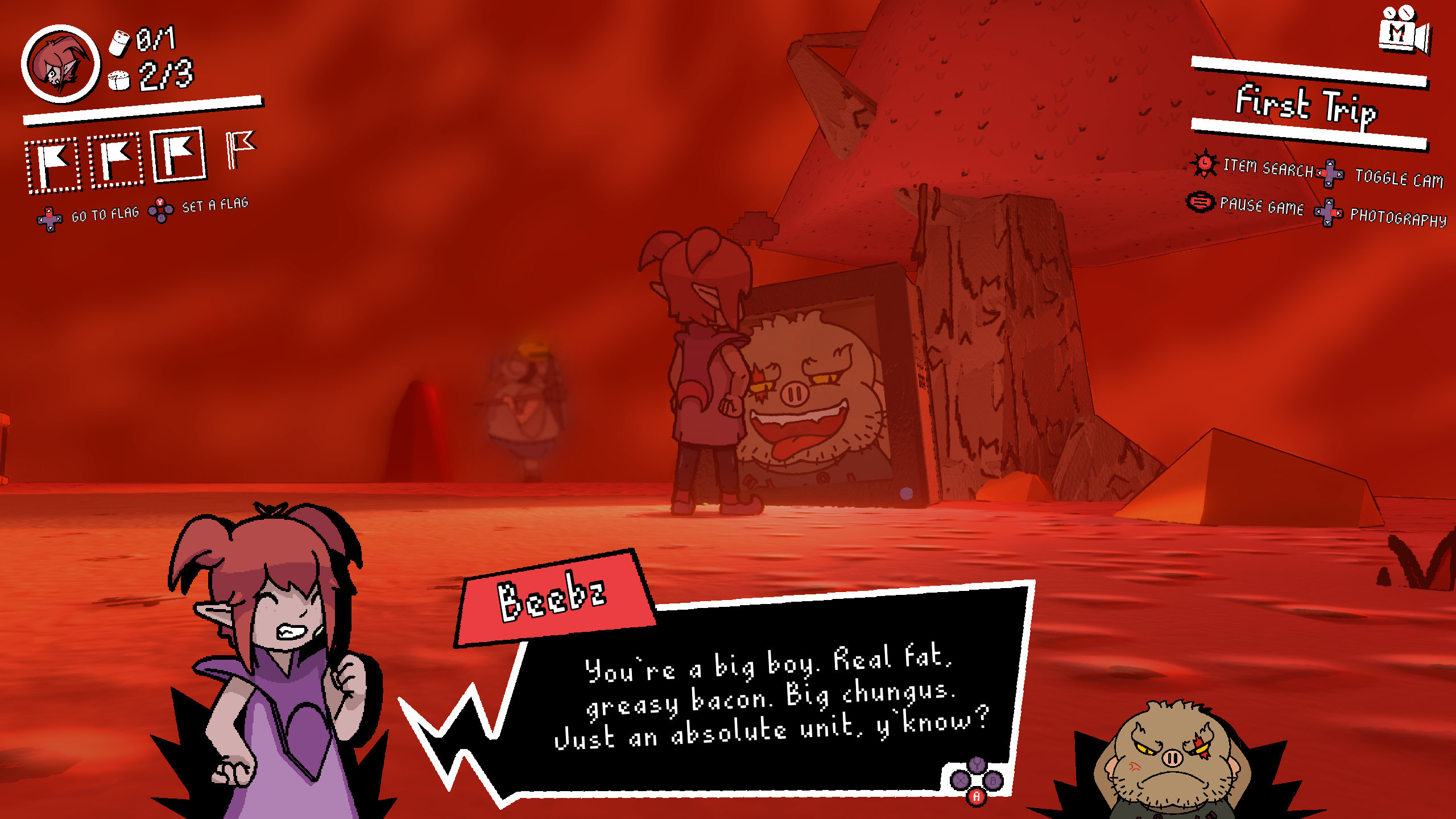 It’s an amusing take on the platformer story formula, shifting the focus to kid friendly versions of chaotic neutral gremlins and monsters for giggles. The attitude of Beebz is shared by the wider world, levels and hub areas filled with people to talk to for some amusing bits of dialog and moments of sass. The few bits of voice acting are also greatly appreciated, though the mixing on the vocal lines tend to be a tad too quiet compared to the music if an actor is holding back their voice a bit. It’s an issue shared on some of the tracks with vocals, though this isn’t consistent.