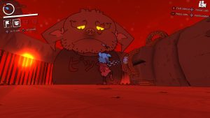 Demon Turf uses a mix of 2D sprites in a 3D world, giving every character and minor NPC a unique and lively look. This is really shown off with Beebz, who takes on multiple forms based around the parts of her outfit and her hair. This helps in gameplay by making it clear visually that you’re still controlling Beebz, no matter the form, through familiar design elements. It also gives the massive bosses interesting designs, as they often mix together sprites and 3D models, selling their size and threat further with abnormal design elements (not unlike some of the Paper Mario series boss designs).