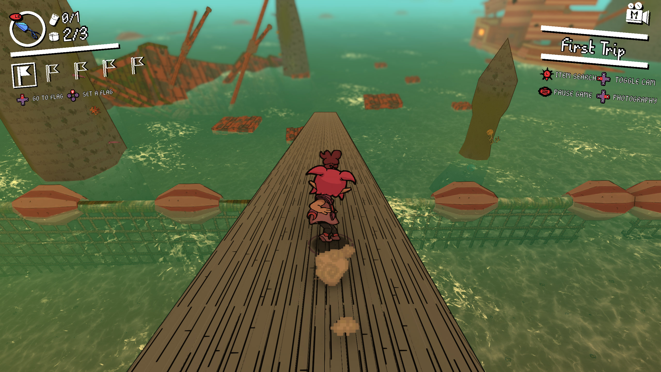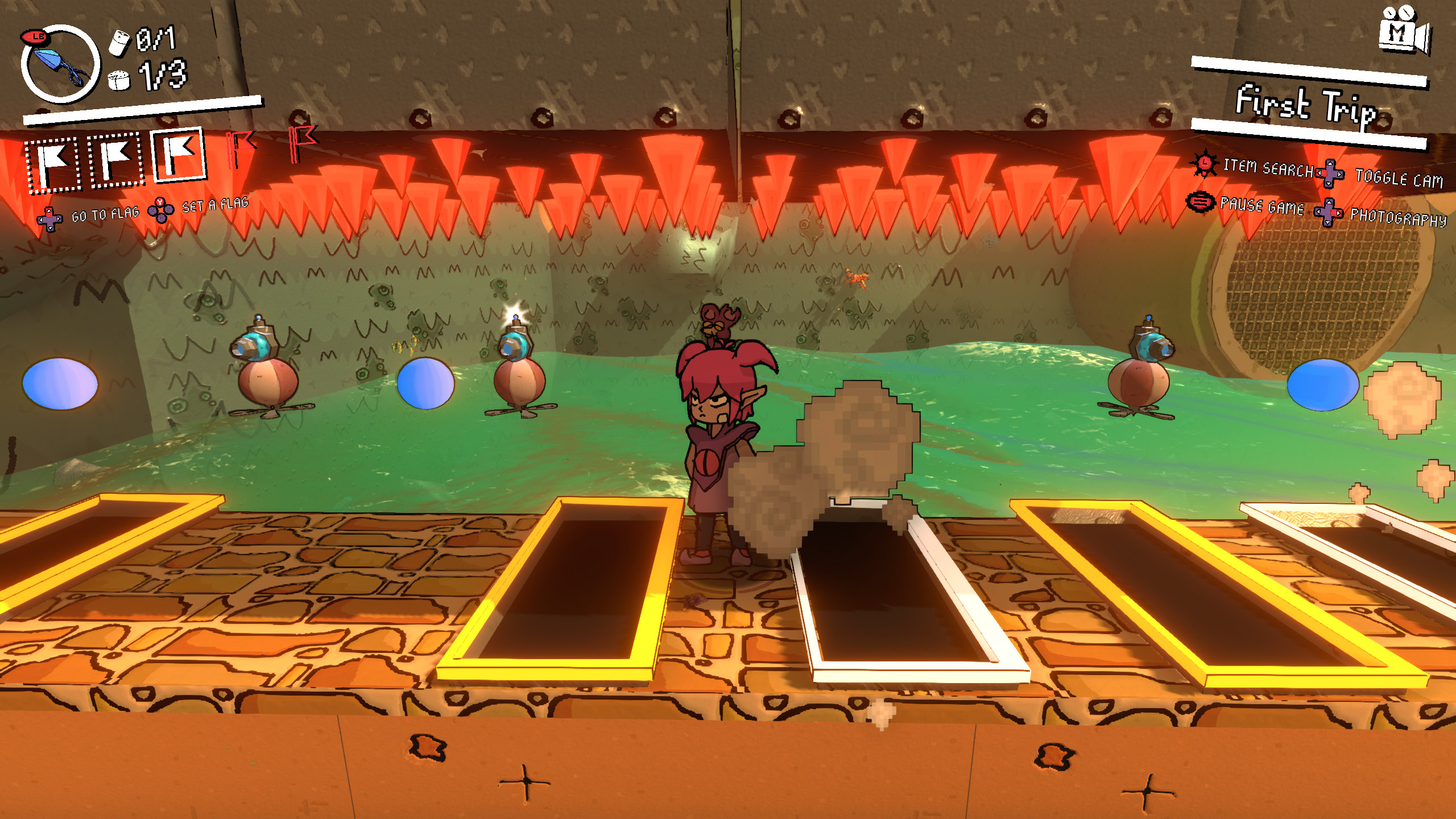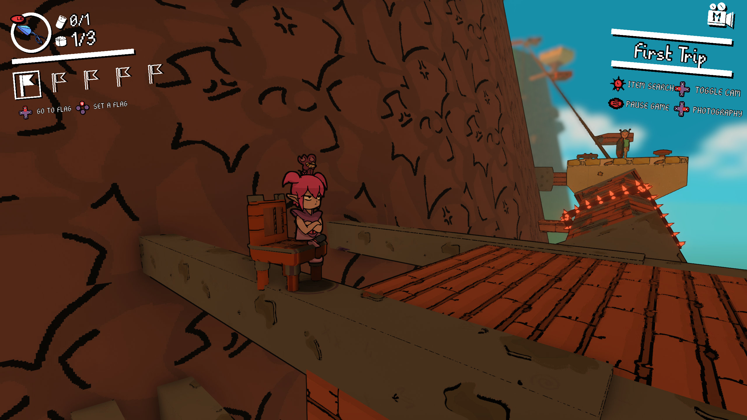 These are minor issues, though more significant ones might be the iffy handling of the grappling hook (remember that the camera will adjust itself between shots and you should be fine) and the slow pace of the push and pull fights. It has the awkward camera issues of the Bowser fights of Super Mario 64, especially in Damp’s fight as you knock him off stage similar to swinging Bowser into bombs. It’s no game breaker, but it does make a lot of fights feel off, as it becomes difficult to keep track of where everything is as your sprite blocks what’s directly in front of you at some angles.