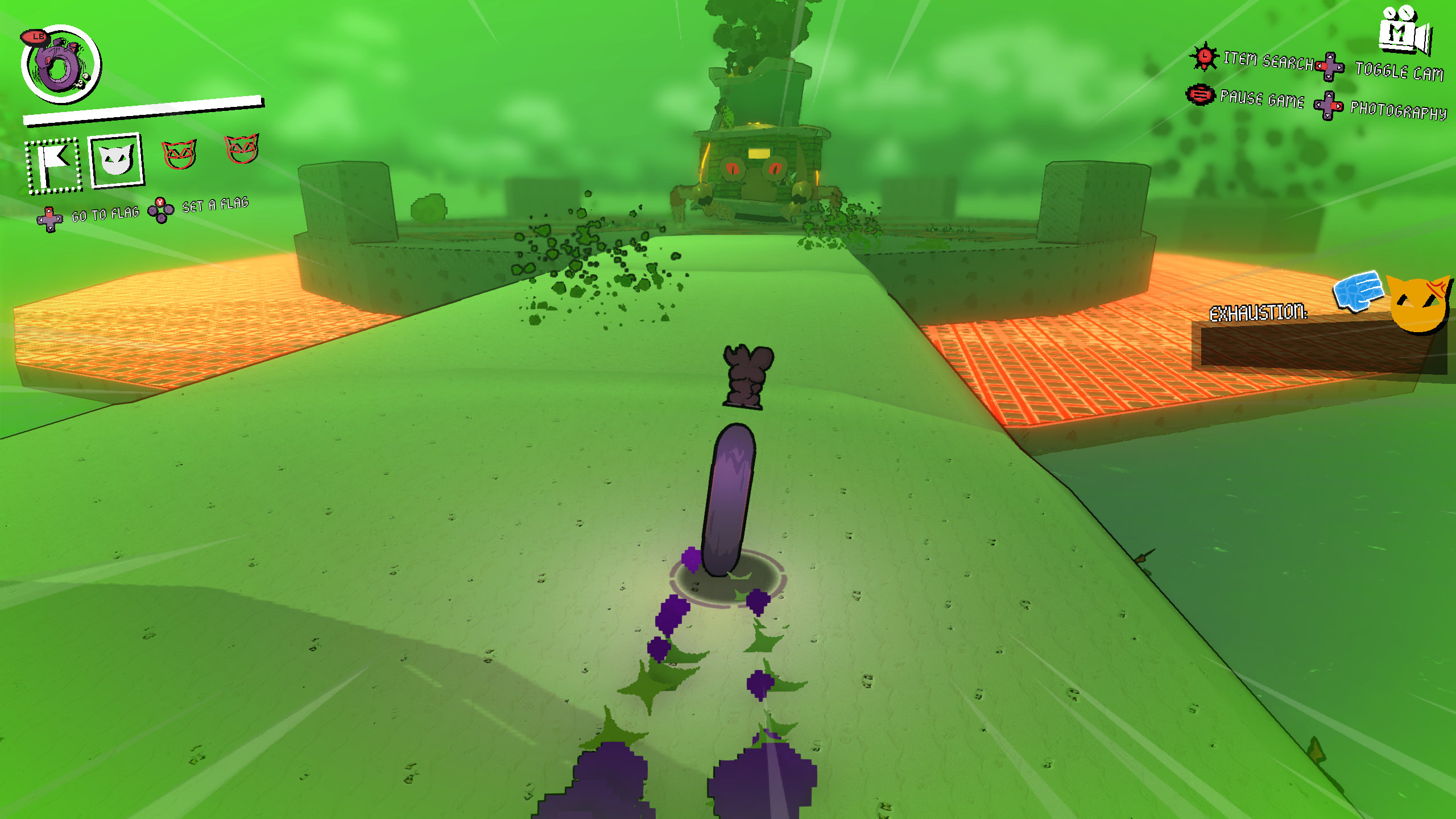 As the product of a small team, Demon Turf is extremely impressive, though you can see the limitations of that here and there. The design of the 3D areas is usually colorful and eye catching, but some textures are notably too flat or shiny for what they should be. Fog and smoke effects also don’t quite work as well as they should, obfuscating too much instead of adding to the atmosphere.