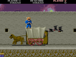 Demon’s World received just one Japan-only console port for the PC Engine CD (under the Japanese name, Horror Story), and the graphics are spot-on similar. It also gets an enhanced soundtrack which, while good, might make one wonder why this game wasn’t just released to the normal PC Engine when its assets could have done just as well on the normal PCE. It also jumbles up the order of the stages for some bizarre reason, starting out with the Chinese segment before the Japanese one and ending up at the Western town as the third level. It adds a skeletal cowboy boss who floats in a figure-eight, firing bullets and summoning scorpions, and it adds a cavernous final level in between the last dragon and the final boss.