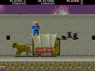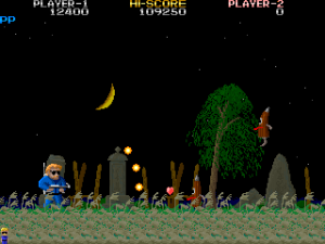 Toaplan was best known for their vertical shoot-em-ups in the vein of Fire Shark and Batsugun, but they were capable of making other types of games over their ten-year lifespan. Hellfire and Zero Wing were framed horizontally, Snow Bros. was essentially their take on Bubble Bobble, Wardner was an conventional action-platformer, and Knuckle Bash was an even less likely beat-em-up. Demon’s World falls into the unconventional zone for Toaplan, being an auto-scrolling run-and-gun that stretches to be as Halloween-esque as possible, mashing together all sorts of monsters and ghouls into one of their quirkiest arcade adventures.