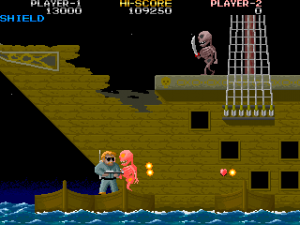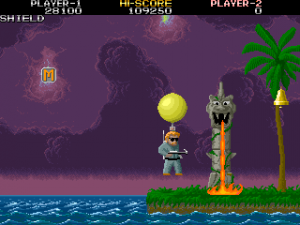 Demon’s World makes no bones about its subject matter: Shooting monsters and little else. No dodge mechanics or scoring system, just a one-or-two player romp through an improbably diverse stretch of geography blasting baddies to the beyond. It’s not Toaplan’s most exciting game or their craziest, and it seems to be lesser remembered among their fans. Nonetheless, it’s something different from what they normally did, and it’s an enjoyable enough romp for the Halloween season, even if it’s debatable whether or not dragons are Halloween appropriate. There’s been worse from this fallen shooter team, so if you’re already used to the adventures of Sir Arthur, the Belmont bloodline, and Rick Taylor’s Terror Mask-fueled nightmares, it’s worth looking into the sole video game outing of Shadestache McGhostbust and his dorky partner/brother/son/whatever.