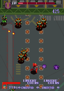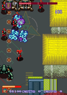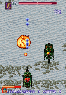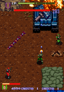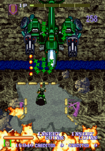 An interesting gimmick not found in other titles is that you get to pick a specific segment of the stage map to plan for an assist bombing. Whichever part you pick will be raided by friendly planes and nuke everything in sight while you completely survive a carpet bombing, much to the enemy’s detriment. Don’t analyze it and just take for granted you’re awesome enough to survive that. There are some areas where this feature is more desirable than others (particularly those where mid-boss tanks appear), but you won’t know which segments are most effective until you’ve played the game a few times.
